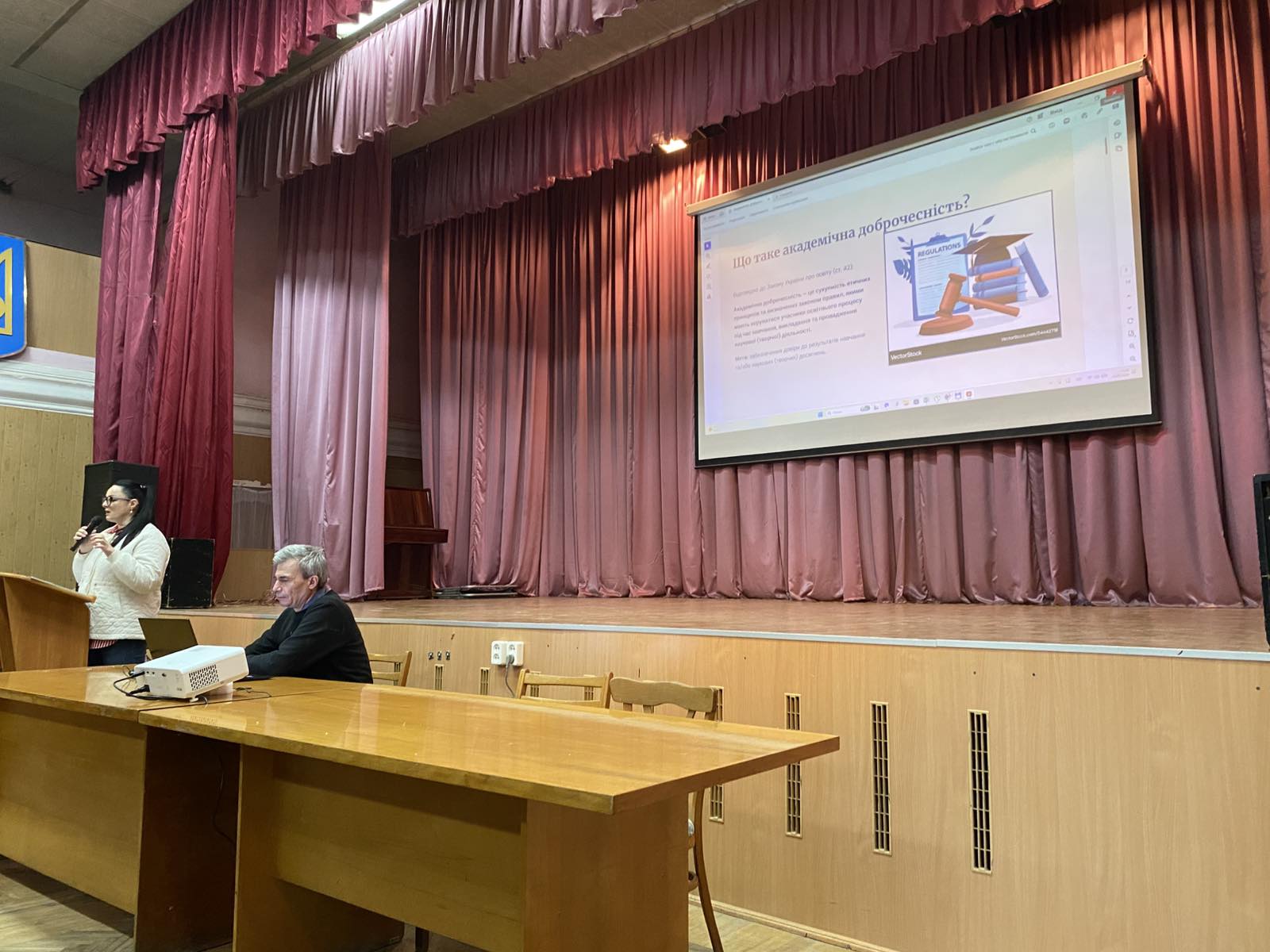 Зустріч зі студентами розпочалася вітальним словом заступника директора з навчальної роботи Івана Малика. Далі він передав слово Ользі Коваль, юрисконсульту коледжу, яка нагадала про принципи академічної доброчесності, зробила порівняльний аналіз Закону Ураїни «Про академічну доброчесність» та Положення про академічну доброчесність педагогічних працівників та здобувачів освіти ВСП «ФКЕП ІФНТУНГ».