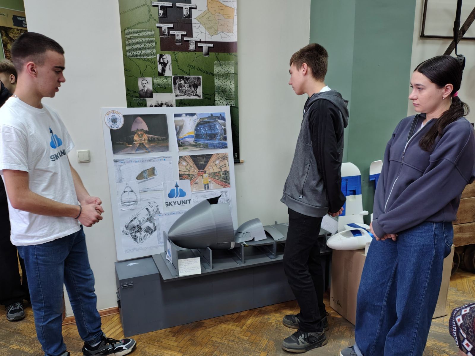 Команда студентів «SKYUNIT» Соловчук Володимир КІ-25-01, Кущак Максим АК-24-01, Башта Вікторія ФБ/МН-25-01 (керівник – Наталія Тучак) представила свої розробки, серед яких напрацювання по 3D-друкованій арт-інсталяції легендарного літака АН-225 «Мрія» і модель авіаційної техніки «STALLION», що свідчать про послідовний розвиток їхньої проєктної діяльності та інтерес до сучасних технологій цифрового моделювання.