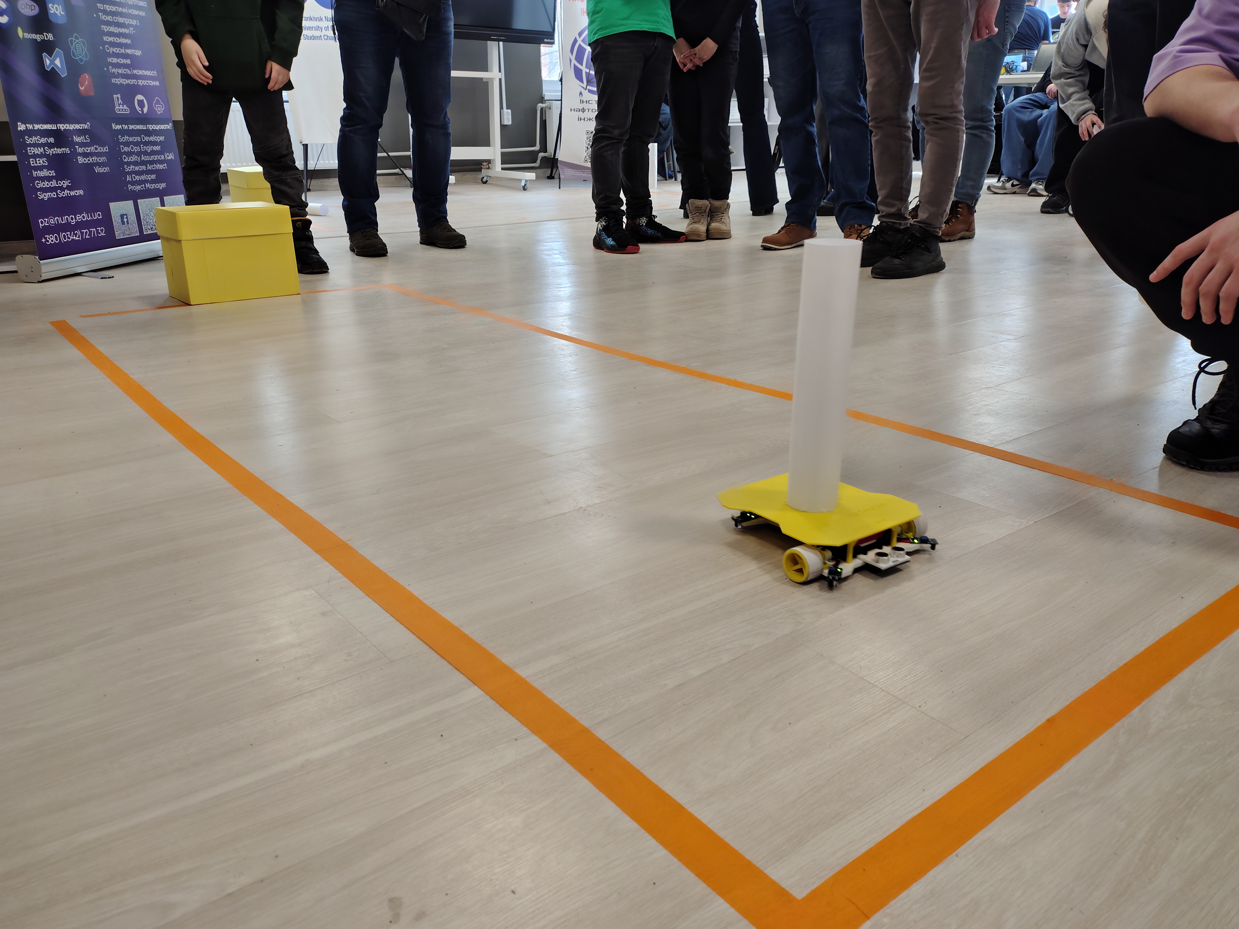 Однак змагальний день розпочався з серйозного випробування. Безпосередньо перед стартом, через помилку з живленням пошкодилися ключові компоненти. В іншої команди це могло б означати “кінець” участі, але наші студенти – не з тих, хто швидко здається. Поки решта учасників змагалась у перших двох номінаціях, хлопці оперативно знайшли нові компоненти та відновили робота на місці.