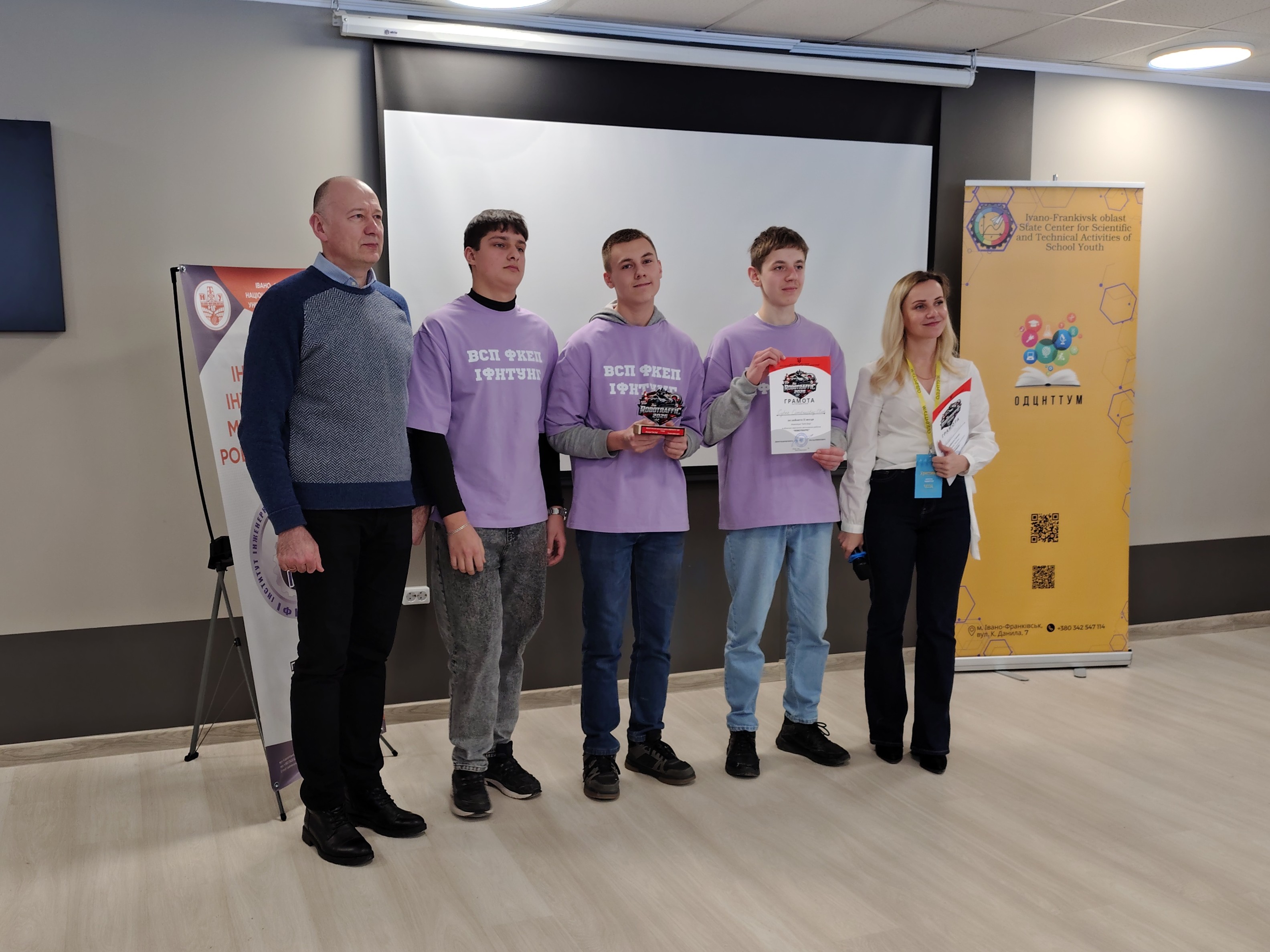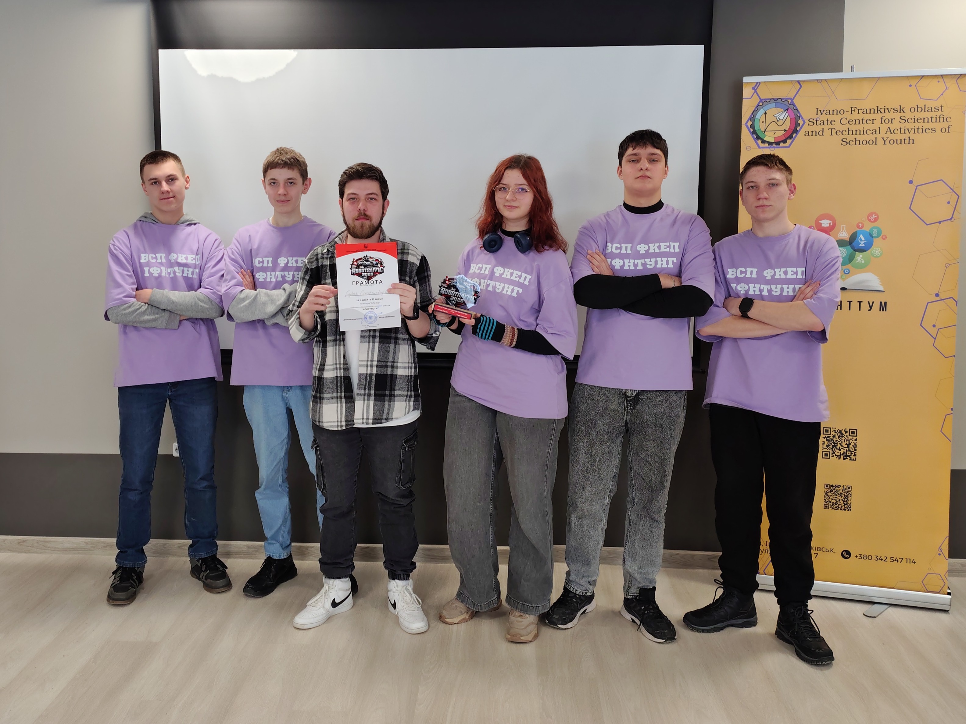 Наш коледж представила команда гуртка «Cyber Constructing Club» під керівництвом Ігоря Володимировича Пронюка у складі студентів груп АК-24-01 та АК-24-02: Турія Станіслава, Кущака Максима та Григоріва Арсена. Хлопці самостійно спроектували, зібрали та запрограмували автономного робота.